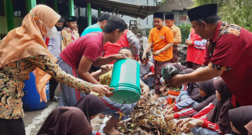Sabtu (11/2) pelaksanaan Projek (P5) yang bertemakan sampahku tanggung jawabku bertujuan untuk membentuk karakter pelajar Pancasila yang beriman kepada Tuhan YME dan berakhlak mulia, gotong royong, dan kreatif. Tampak para peserta didik sedang sibuk mengelola sampah dedauan menjadi pupuk kompos. Selain itu, peserta didik juga membuat kerajinan dari barang bekas an organik dari plastik, sedotan, botol bekas minuman, dan kemasan makanan ringan.